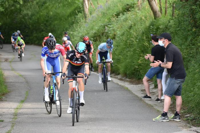 Bi ziklistak indarrez akituta, hustuta, heldu ziren. Taldeko beste laurek gogotik ordaindu zuten lasterketaren gogortasuna; bero handiko lehen eguna izan zen txirrindulari gazte haientzat eta gorputzak oraindik ere egokitu gabe daudela nabari zen.