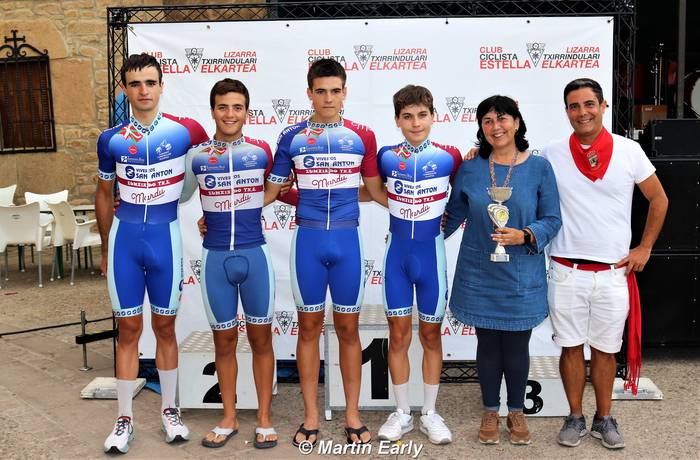 Karrera irabaztea ederra da, baina taldeka onena izatea ere oso polita da, talde guztiaren saria baita, guztien artean lortutakoa. Viveros San Anton-Exclusivas Mardu talderik onena izan zen Astigarragako Iruki sarian. Taldea lau txirrindularik osatzen dute, eta laurak lehen urtekoak dira; beraz, meritu ikaragarria du taldekako garaipenak. Lau mutil horiek zortzi, hamabi edo hamalau kidez osatutako taldeen aurka lotu dute garaipena, eta esan beharrik ere ez dago lau txirrindularirekin egoera guztiak kontrolpean izatea zeinen zaila den.