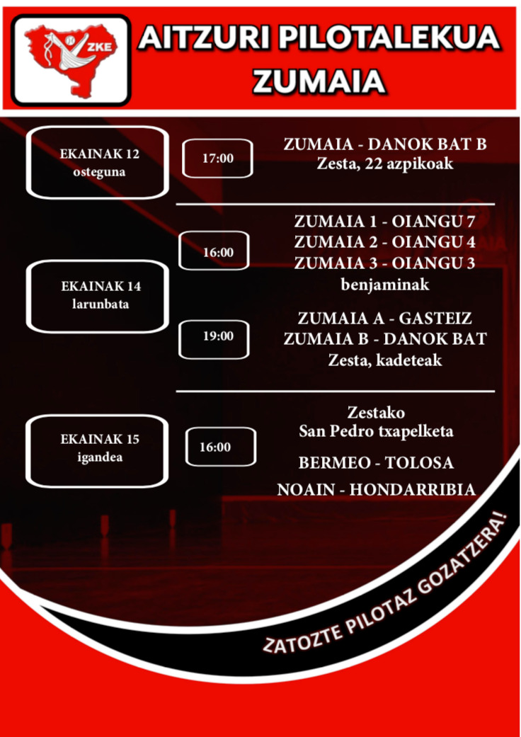 Ez da pilota partidarik faltako aste honetan Aitzuri frontoian. Gaur hasi eta igandera bitartean izango dira partidak Zumaiako pilotaleku luzean.