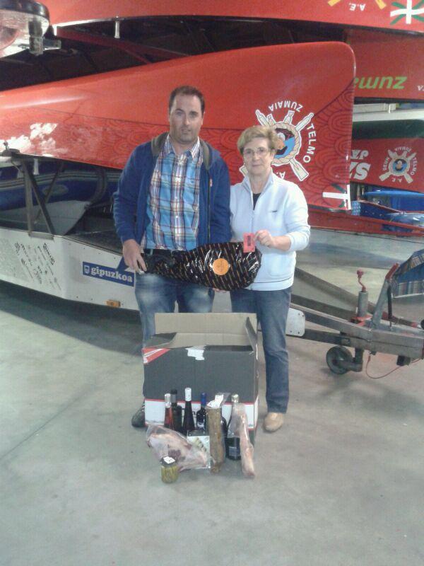 Manoli Eizagirreri –2.125 zenbakia– egokitu zaio arraunlari beteranoek Olarro Egunean zozkatutako saskia. Atzo jaso zuen saria, arraun elkartean Migel Mari Zubimendiren eskutik.