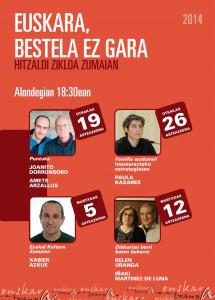 Eta amaitzeko, martxoaren 12an Iñaki Martinez de Luna eta Belen Uranga etorriko dira, Diskurtso berri baten beharra hitzaldia eskaintzera. Euskararen inguruan nolako diskurtsoa eraiki beharko litzatekeen aztertuko dute: hizkuntza ekologiaren balioa, gaur egungo planteamenduetatik zer den baliagarria...