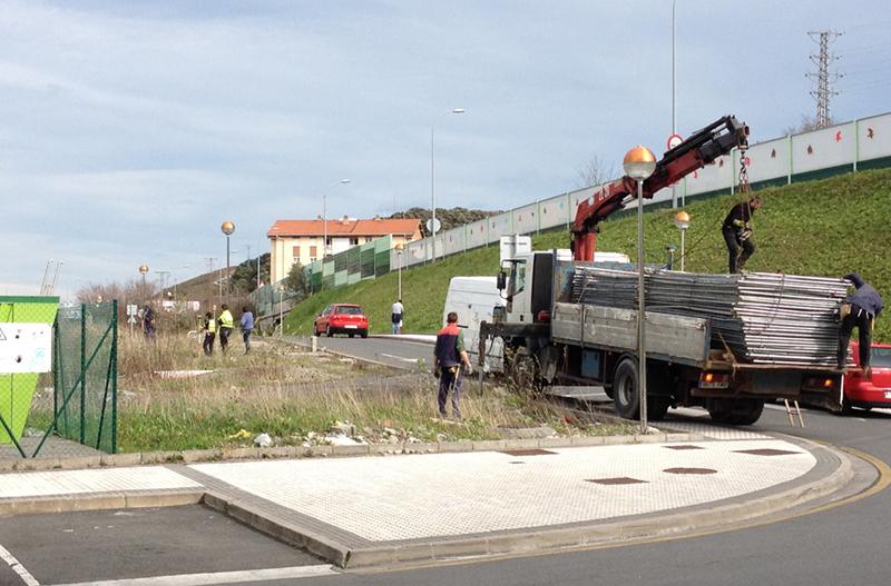 Oraindik ez dago zehaztuta frontoia eraikitzen hasteko eguna, baina aurrelanak hasi dira dagoeneko. Gaur ikusi ditugu neurketak egiten, orubea mugatzeko hesiak pilatzen eta lanerako behar diren etxolak eta beste ekartzen.