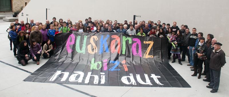 - 12:15ean Mari kaleko plazan euskararen aldeko argazki jendetsua.