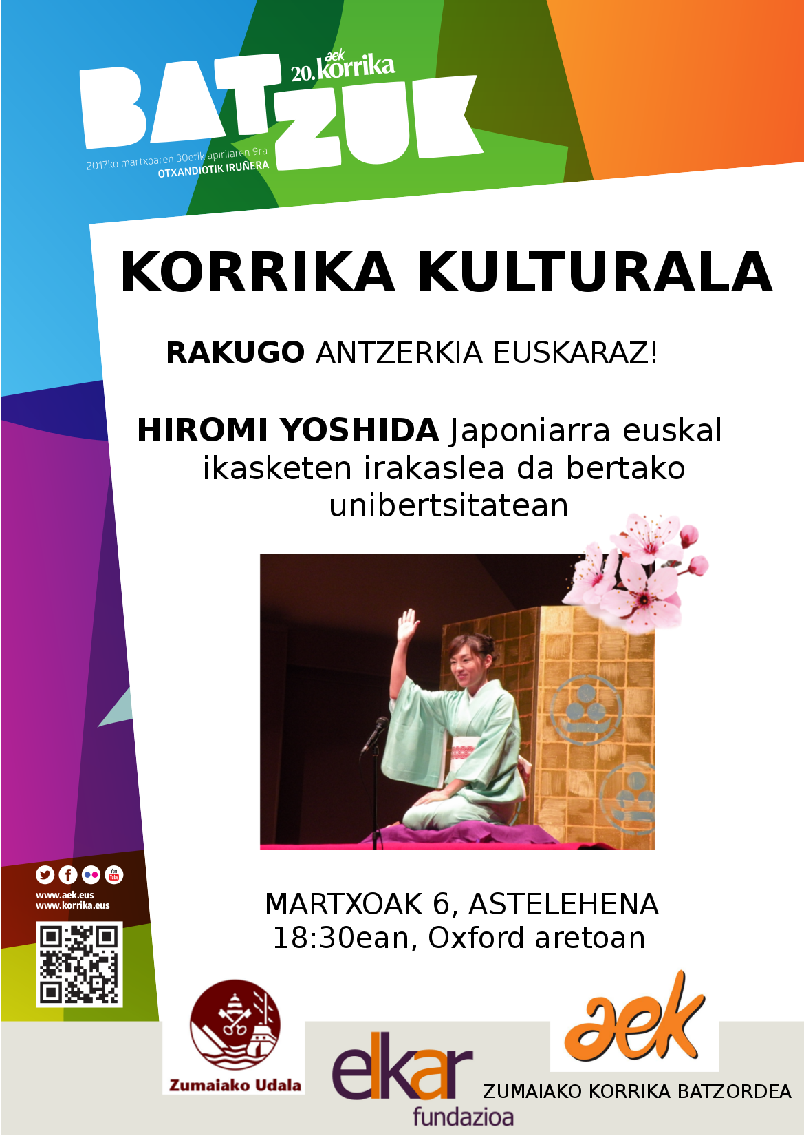 Astelehenean Zumaian izango den antzezlea Hiromi Yoshida izango da, euskal ikasketen irakaslea Japoniako unibertsitatean.