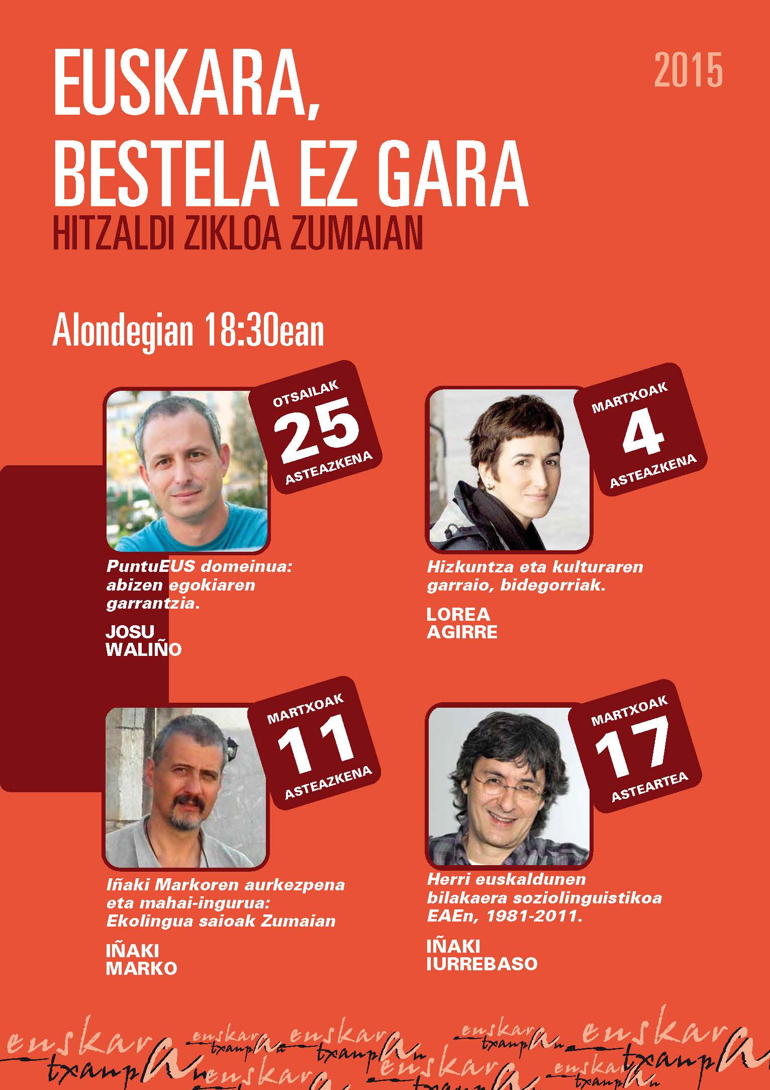 Euskara, bestela ez gara hitzaldi zikloaren barruan eskainiko du hitzaldia Josu Waliñok, Puntueus domeinuaren inguruan: “Puntueus domeinua, abizen egokiaren garrantzia”. Hitzaldia 18:30ean izango da, Alondegian.