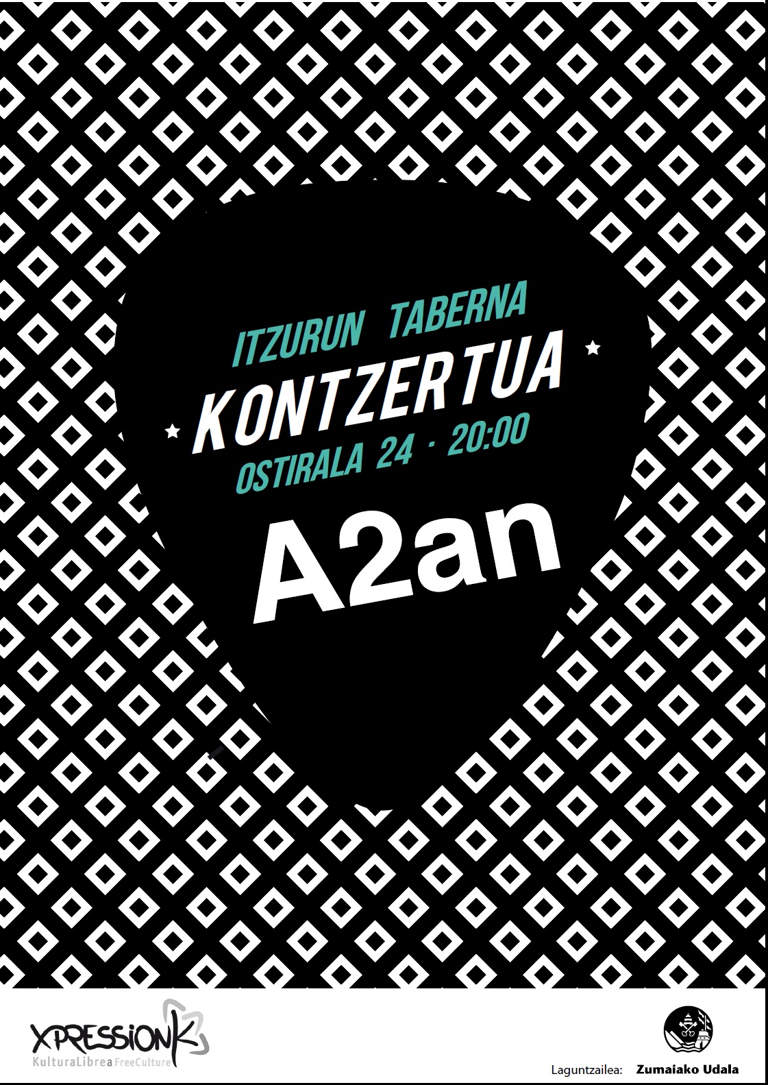 Ostiralean kontzertua eskainiko du A2an taldeak Itzurun tabernan, 20:00etatik aurrera. Gauean, 23:00etan, umorezko bakarrizketa saioa egingo du Javier Merino aktoreak Ganbara tabernan.