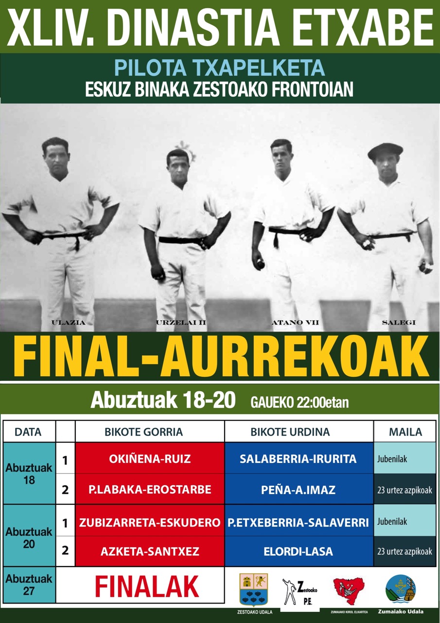 Gauzak horrela final-aurreko bi jardunaldiak izango dira datorren astean atxekitako kartel eta egutegiaren arabera. Asteartean, abuztuaren 18an, hokako jaialdia izango da:
