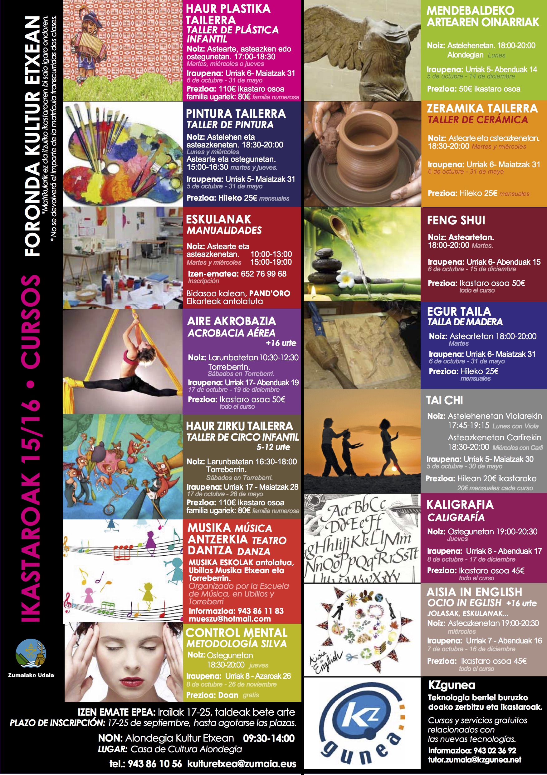Udazkenarekin batera, hemen dira Kultur Etxeak antolatzen dituen ikastaroak. Denetarik dago aukeran.