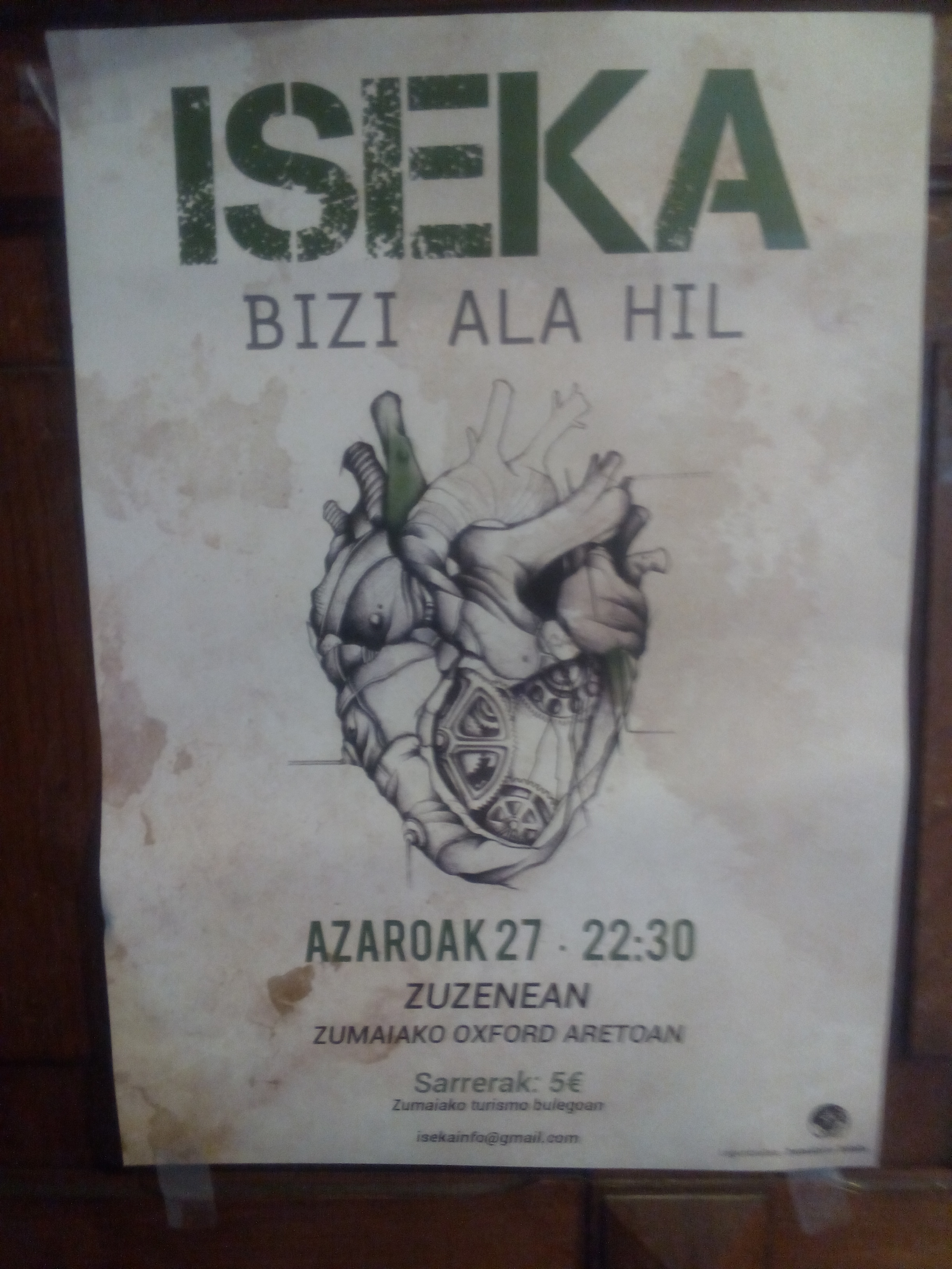 Iseka taldeak disko berria aurkeztuko du zuzenean azaroaren 27an, ostirala, 22:30etik aurrera Alondegiko Oxford aretoan. Bizi ala hil du izena diskoak eta zortzi kantaz osatzen da. Kontzerturako sarrerak salgai daude turismo bulegoan, 5 euroan.