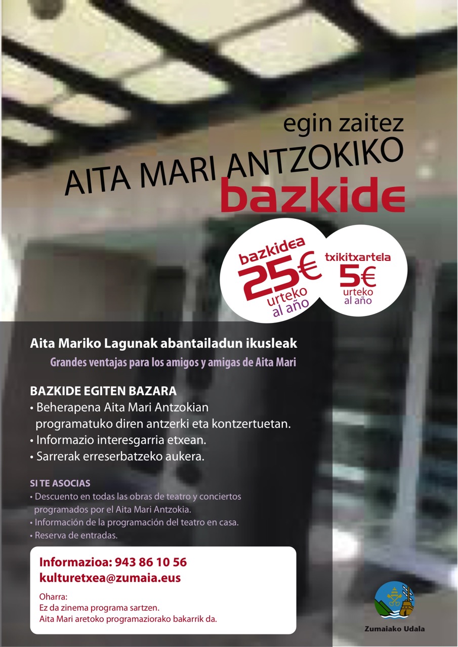 Aita Marin antolatzen diren antzerki edo dantza saioetan abantailak eskaintzen ditu bazkide izateak. Hala, bazkide izanda, halako abantailaz gozatzeko aukera dago: