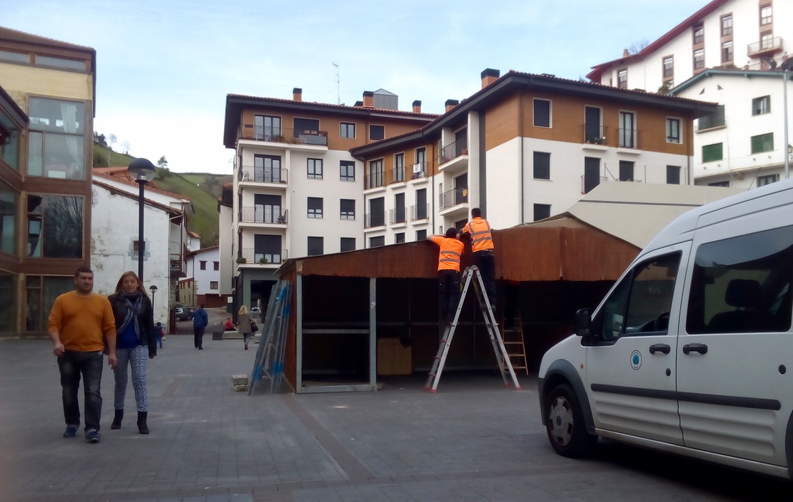 Gabonak gero eta hurbilago ditugu. Hemendik astebete eskasera, Gabon giroan murgilduta egongo gara. Argiak piztu dira, musika ere itzuliko da eta egun hauetan jaiotza jartzeko lanetan dabiltza Eusebio Gurrutxaga plazan. Hogarra eta Uzkudun taberna artean jarri da aurten naximendua.