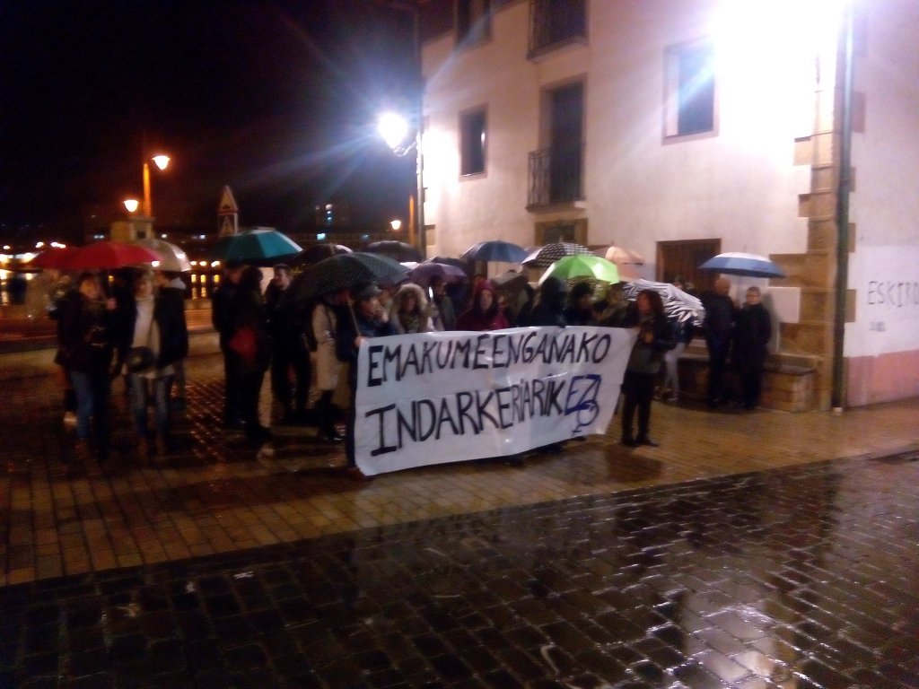 Eguraldia lagun izan ez bada ere, herritar talde bat Alondegiaren aurrean elkartu da gaur iluntzean Alicia haurraren hilketa eta bere amak jasandako erasoa salatzeko. Emakumeenganako indarkeriarik ez lema zeraman pankarta batekin elkarretaratu dira.