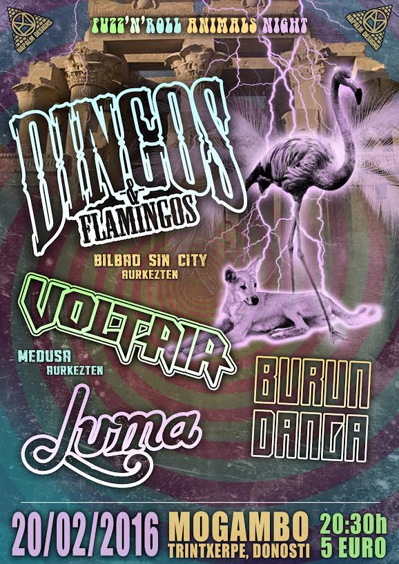 Larunbatean, berriz, Trintxerpen joko dute, Mogambo rock klub mitikoan, Fuzz'n'Roll Animal Night izena duen kontzertuan. Voltaiaz gain, Burun danga, Luma eta Dingos & Flamingos taldeek joko dute. Azken honek, Bilbao sin city diskoa aurkeztuko du.