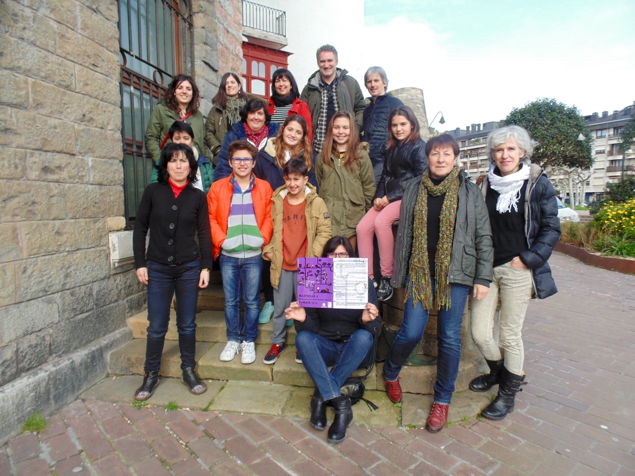 Berritzegune Zarauzko eta Zumaiako hezkuntza komunitateetan abian jarritako aholkularitza foroa da. Aurten jarri da martan eta genero eta hezkidetzako kooperazio lanak burutzen ditu, “neska eta mutilei berdintasuneko hezkuntza eskaintzeko helburuarekin”, adierazi zuen Iribarrek. Bi herrietan batera lan egiten aritu dira eta hori, bultzatzaileentzako, egokia omen da “gizarte justuago” bat aurkitzeko. Ikasle hauei more koloreko zapi bana banatu zaie eta bertan mezuak idatziko dituzte. “Gero, zapi horiek jaso eta herri lekuren batean zintzilikatuko dira”. azaldu zuen Karmele Gomezek.