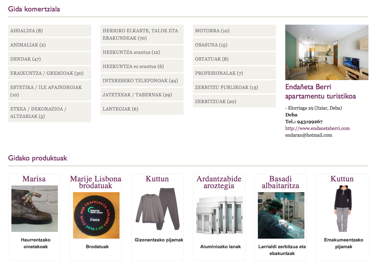 Zumaiako Gidak badu Interneteko bertsioa ere. Baleike.eus-en sarbide bat baino aurkituko duzue: eskuineko zutabean goian, leiho zabal bat bilatzaile eta guzti; zerbitzuen menuan; eta behealdean, atal guztiak eta txandaka agertuko diren negozio eta produktuekin. Iragarle bakoitzak bere orrialde propioa du. Oinarrizko datuekin batera, bere eskaintzaren deskribapena, argazki galeria, web edo sare sozialetarako loturak, geolokalizazioa eta bideoak erakusteko aukera du iragarleak.