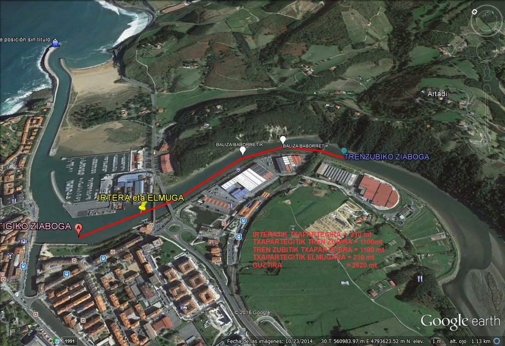 Hiru ziabogako estropada izango da. Irteera/Helmuga Gernika parkearen aurrean kokatuko da. Hasteko Txomin Agirre kaia aldera joango dira, han lehen ziaboga eman eta ibaian gora trenzubi ingururaino helduko dira. Ziaboga eman ondoren, ibaian behera moila pareraino helduko dira, ziaboga eman eta, ibaian gora, helmugara helduko dira.