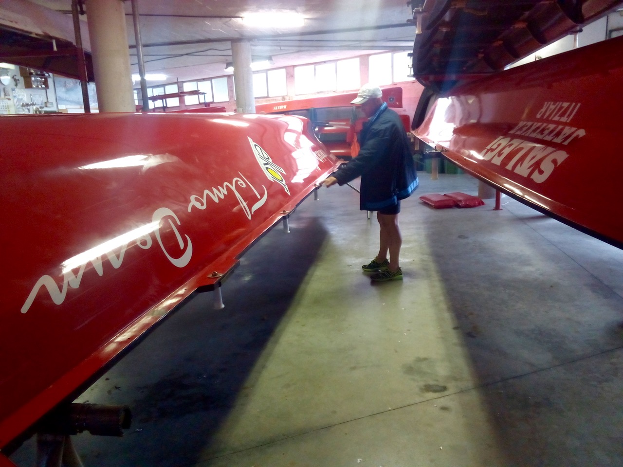 Telmo Deun trainerua txukuntzen aritu dira gaur eta eranskailuak jartzen, ontzian eta arraunetan.