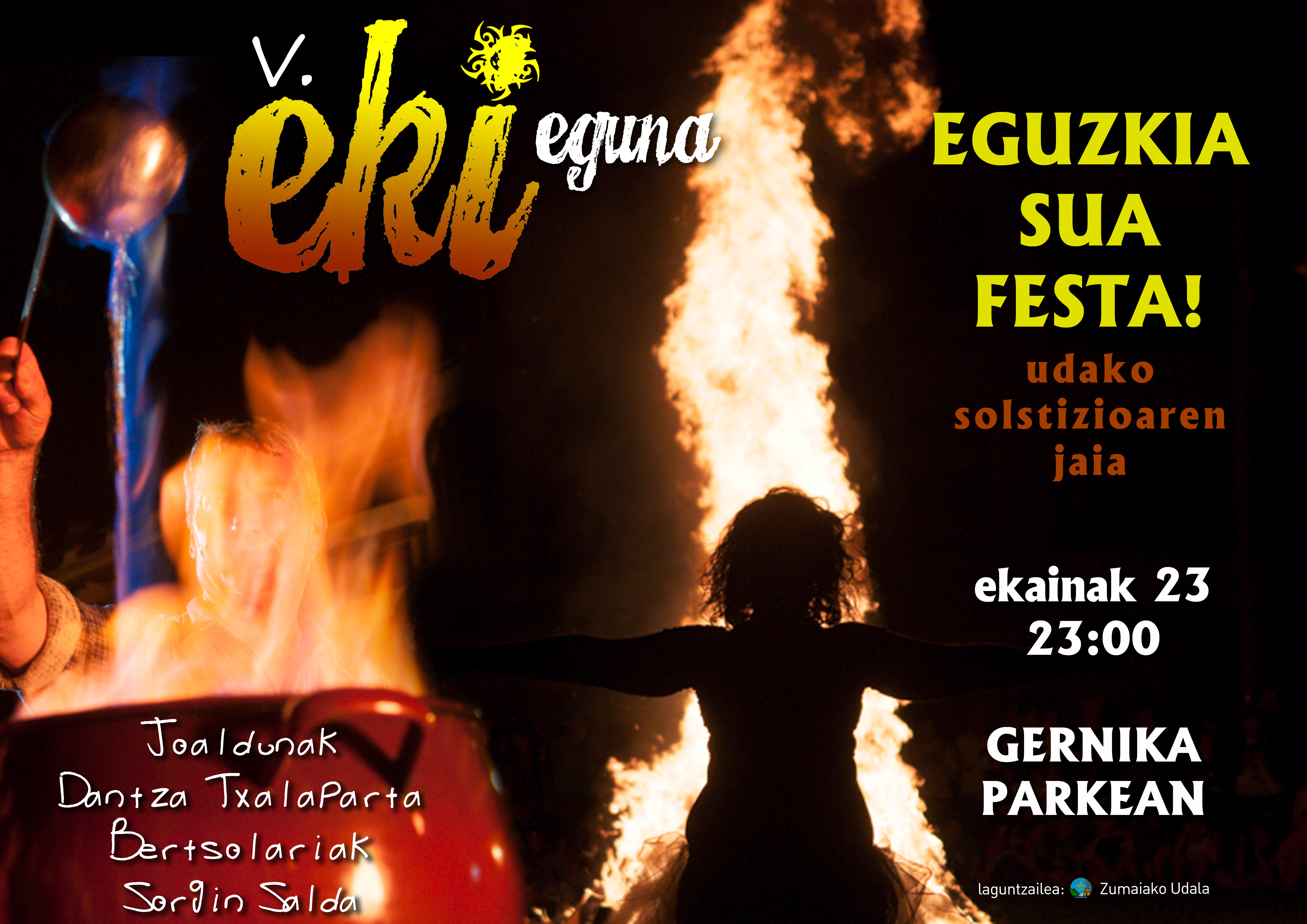 Gero, 23:00ak aldera, Eki eguna izango da. Udako solstizioa ospatzen du ekimen honek eta aurtengoaren bosgarren urtea beteko du. Joaldunak Arritokieta ingurutik Gernika parkera jaitsiko dira sua pizteko.