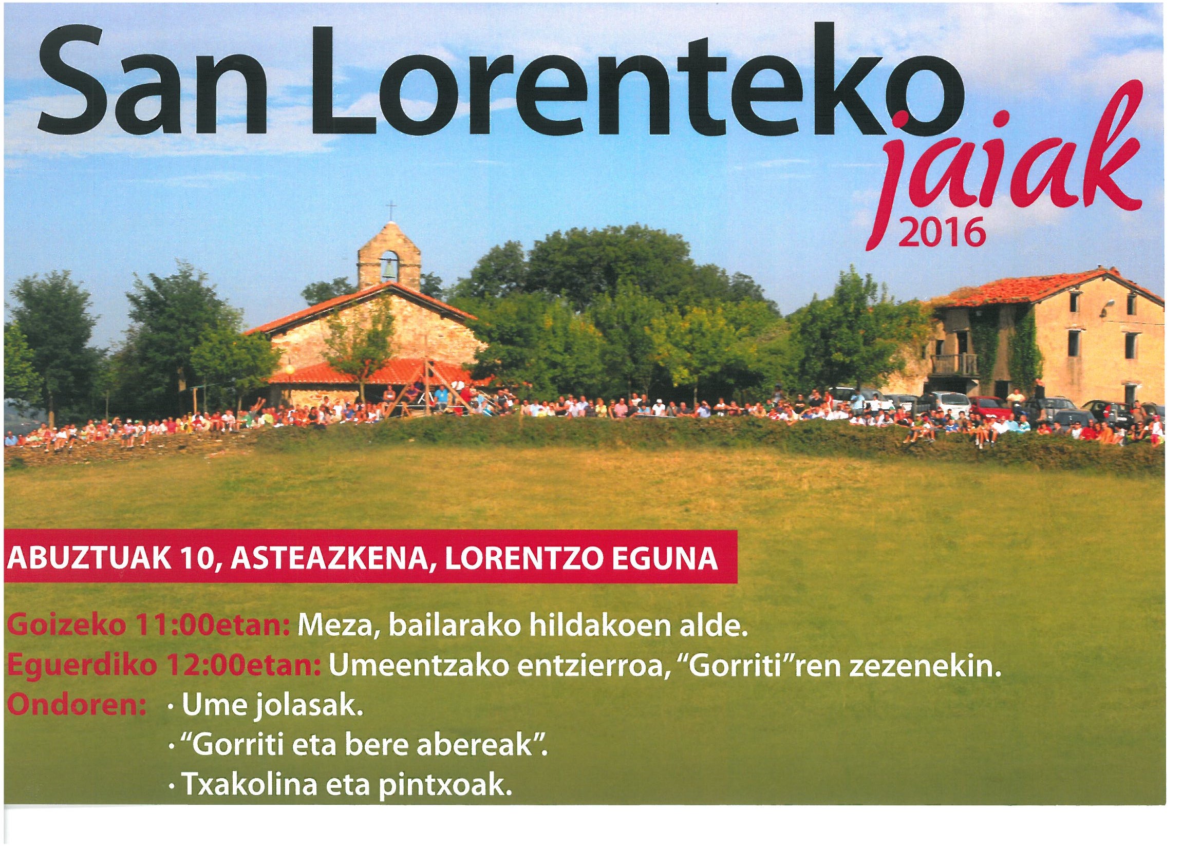 Lorentzo deunaren eguna ospatzen da bihar eta, urtero bezala, festak izango dituzte San Lorenten. Kartelean duzue goiz partean izango diren ekitaldiak.
