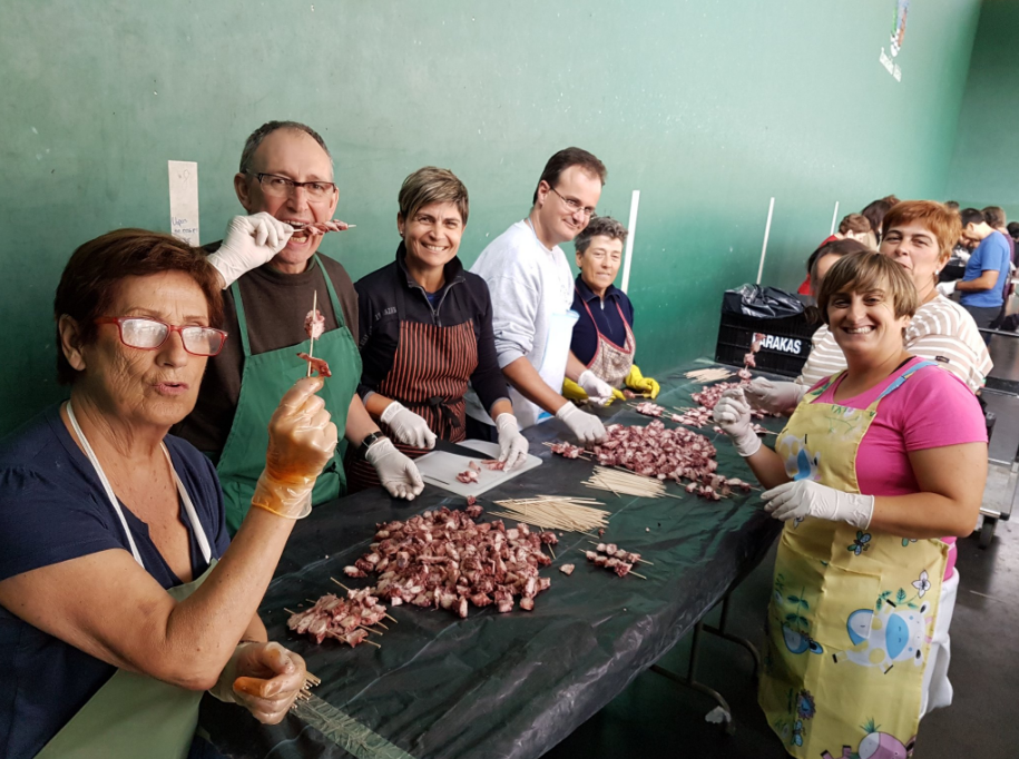 Larunbatean Olarro Eguna izango dugu herrian. Urtero bezala, olagarro-brotxetak salduko dira herrian zehar jarriko diren txosnetan. Guztira 25.000 brotxeta inguru prestatuko dira egun horretarako. Horretan dabiltza orain bertan txosnetan lanean arituko diran hamar elkartetako kideak, bezperan moztutako olagarro zatiekin brotxetak egiten.
