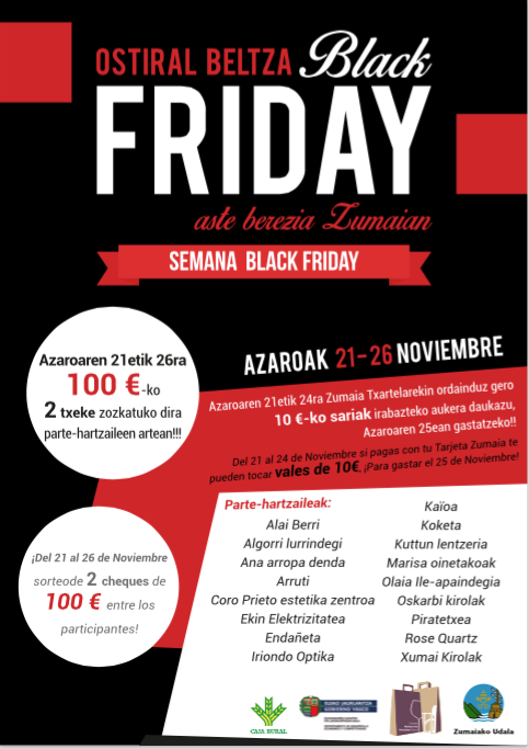 Hala, azaroaren 21etik 24ra bitartean Zumaia Txartelarekin ordainduz gero, 10 euroko sariak irabazteko aukera izango da, gero, azaroaren 25ean gastatzeko.