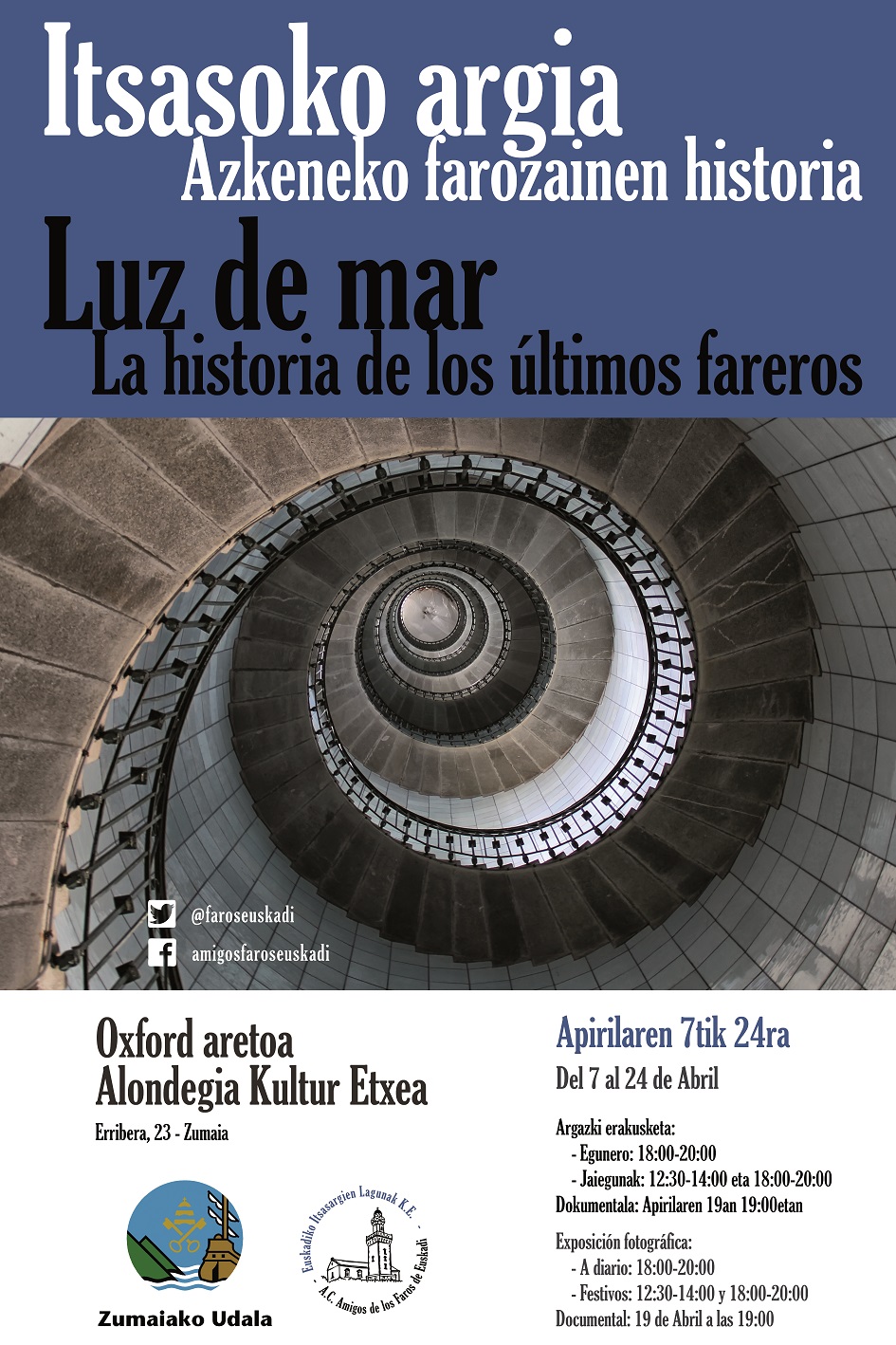 Erakusketaz gain, Luz de mar: la historia de los últimos fareros dokumentala proiektatuko da apirilaren 19an, Oxforden bertan, 19:00etan. Dokumentalaren helburua itsasargien historia erakustea da, haien bueltan bizi eta lan egiten duten haien ahotsaren bitartez. Ondoren, solasaldi bat egingo da Euskadiko Itsasargien Lagunak K.E.-ko kideekin.