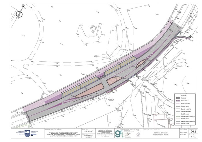 Bestalde, oinezkoentzat, babestutako pasabide bat jarriko da errepidea bi fasetan gurutzatu ahal izateko. Pasabide horrek 4 metro zabal eta 12 metro luze izango ditu. Gainera, aparkalekua eta gurutzatze puntua 1-1,5 metro zabalera duen espaloi batekin lotuko da. Gune hori argiztatuta egongo da.