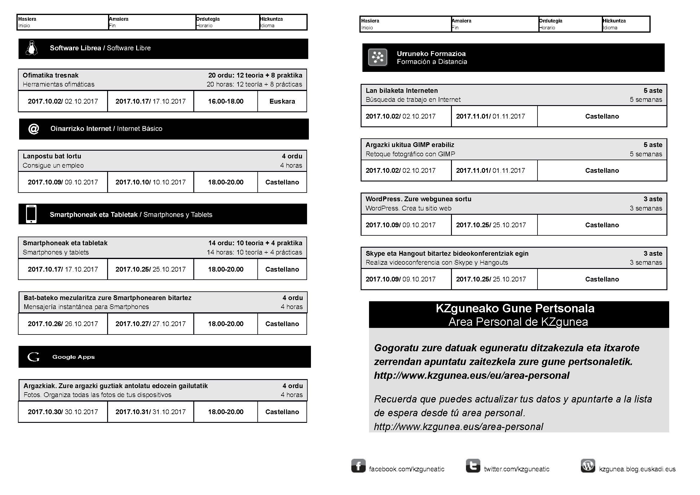 Hau da Kzguneak urrian eskainiko dituen ikastaroak: