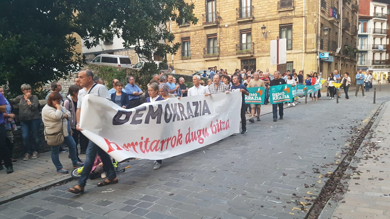 Kataluniako ANC eta Omniun Cultural gizarte mugimenduetako ordezkari Jordi Sanchezi eta Jordi Cuixarti elkartasuna adierazteko elkarretaratzea egin dute gaur arratsaldean Magnolioaren aurrean. Eskutik helduta, Erribera kalea zeharkatu eta Zubitxikitik Moilaberriko zubiranzko bidea egin dute. Gure Esku Dagok, ELA, LAB eta ESK sindikatuek, eta EAJ eta EHBilduk alderdi politikoek egin dute deialdia.