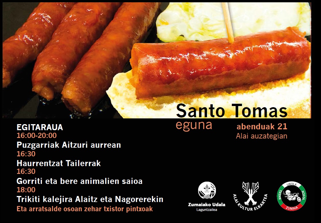 Abenduaren 21a egun seinalatua da Euskal Herriko hainbat herritan, eta gurean ere, Santo Tomas eguna ospatuko da Alai auzategian.