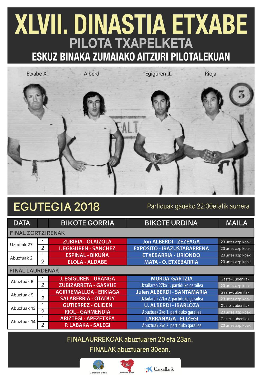 Hasteko, ostiralean, honako neurketak izango dira: Zubiria-Olaizola, Jon Alberdi eta Zezeagaren aurka, eta jarraian, I. Egiguren-Sanchez, Exposito-Irazustabarrena partida jokatuko da.
