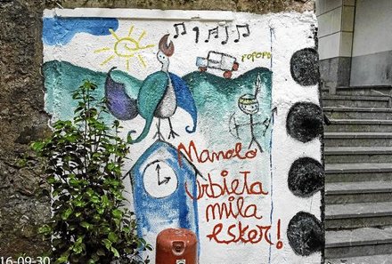 Zumaiako Euskaraldia antolatzeko Batzordeak herritarrengana hurbildu eta informazioa emateko asmoz, egun osoko izen emate festa egin zuen joan den larunbatean. Herrian eta herritik kanpo gero eta ezagunagoa den horma batek bat egin zuen ahalik eta “ahobizi” eta “belarriprest” gehien bildu nahi dituen ekimenarekin, hamaikagarrenez –zehatzago, laurogeita hamargarrenez– mural bat jantziz. Ez da erraza izango margoa bertan ikustea, horma horretako muralek nekez irauten baitute 12 orduz. Hala ere, baliteke honezkero Erribera kaleko 91. murala margotuta edo margotzear egotea.
