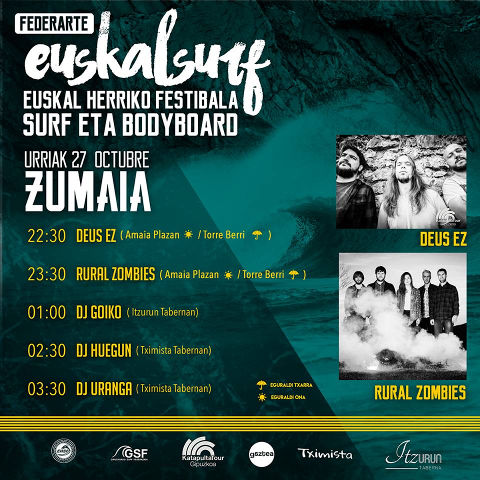 Arratsalderako eta iluntzerako iragarritako ekitaldiak mantentzen dira oraingoz. 16:00etatik aurrera Sup inklusiboa egingo da ibaian, Itsas kiroldegi parean. 19:30ean, berriz, Zumaiako surfisten proiekzioak egingo dira Tximista tabernan.