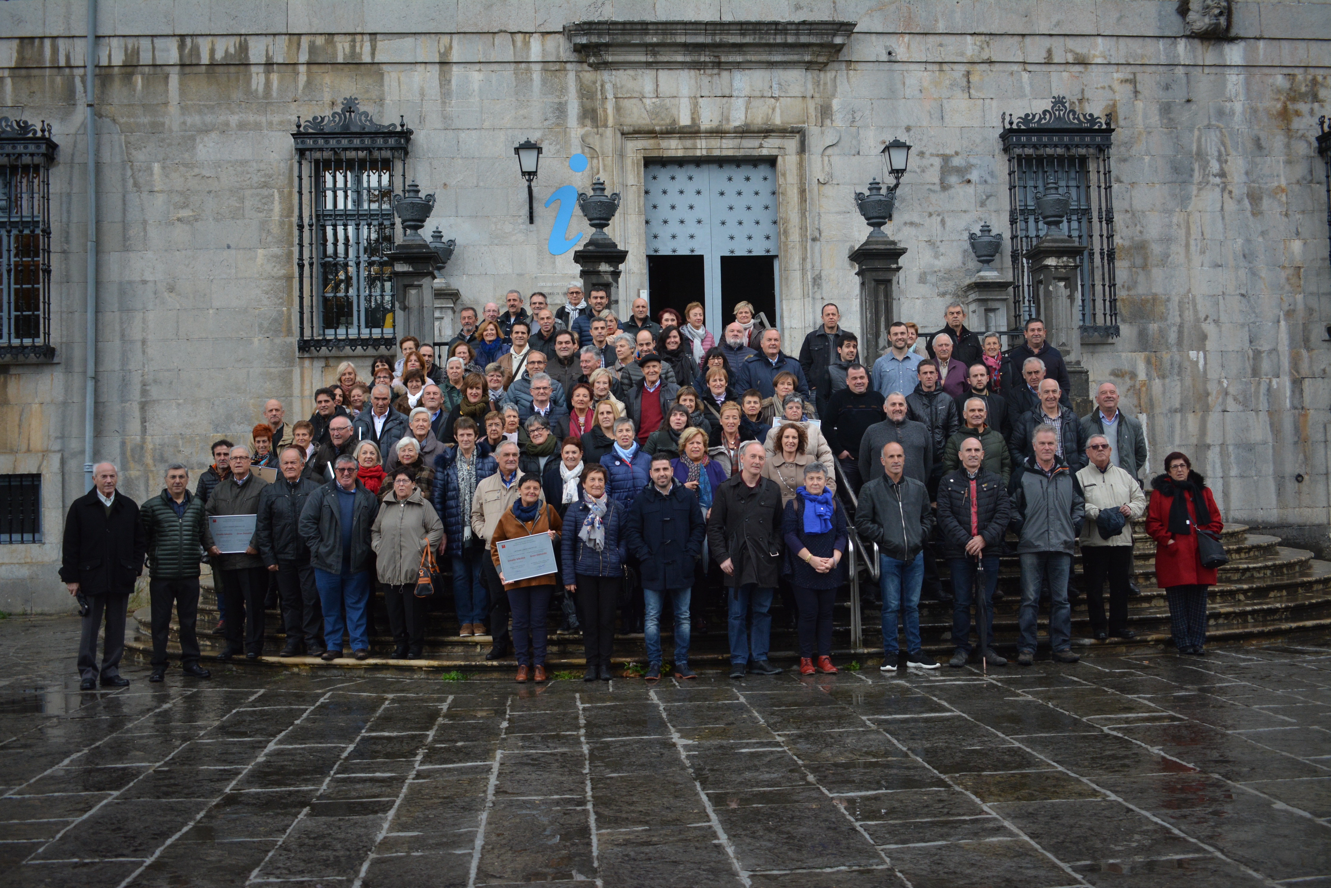 Intsigniak eta diplomak jaso dituztenek herrika banatuta atera dituzte taldeko argazkiak, eta ondoren, guztiek batera beste argazki bat atera dute Loiolako basilikaren kanpoaldean.