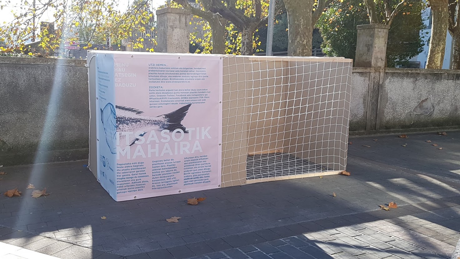 Kanpaina honen baitan arrantza sareez egindako nasa bat jarri dute Eusebio Gurrutxaga plazan. Herritarrek botatzeko diren plastikozko poltsak eta botilak eman ditzakete ontzia osatzeko. Sarezkoegiturak poltsak sartzeko aukera ematen du, eta, aldi berea, kanpora erori ez daitezen saihesten du. Gainera, poltsen bolumena nola hazten den ikusteko aukera ere eskaintzen du, eta horrek ekarpenak egitera animatuko ditu herritarrak. Bestalde, sarezko egituran bertan egunerokoan aplikatzeko modukoak diren prebentzio adibideei buruzko aholku mezuak eta datuak zintzilikatuko dira.