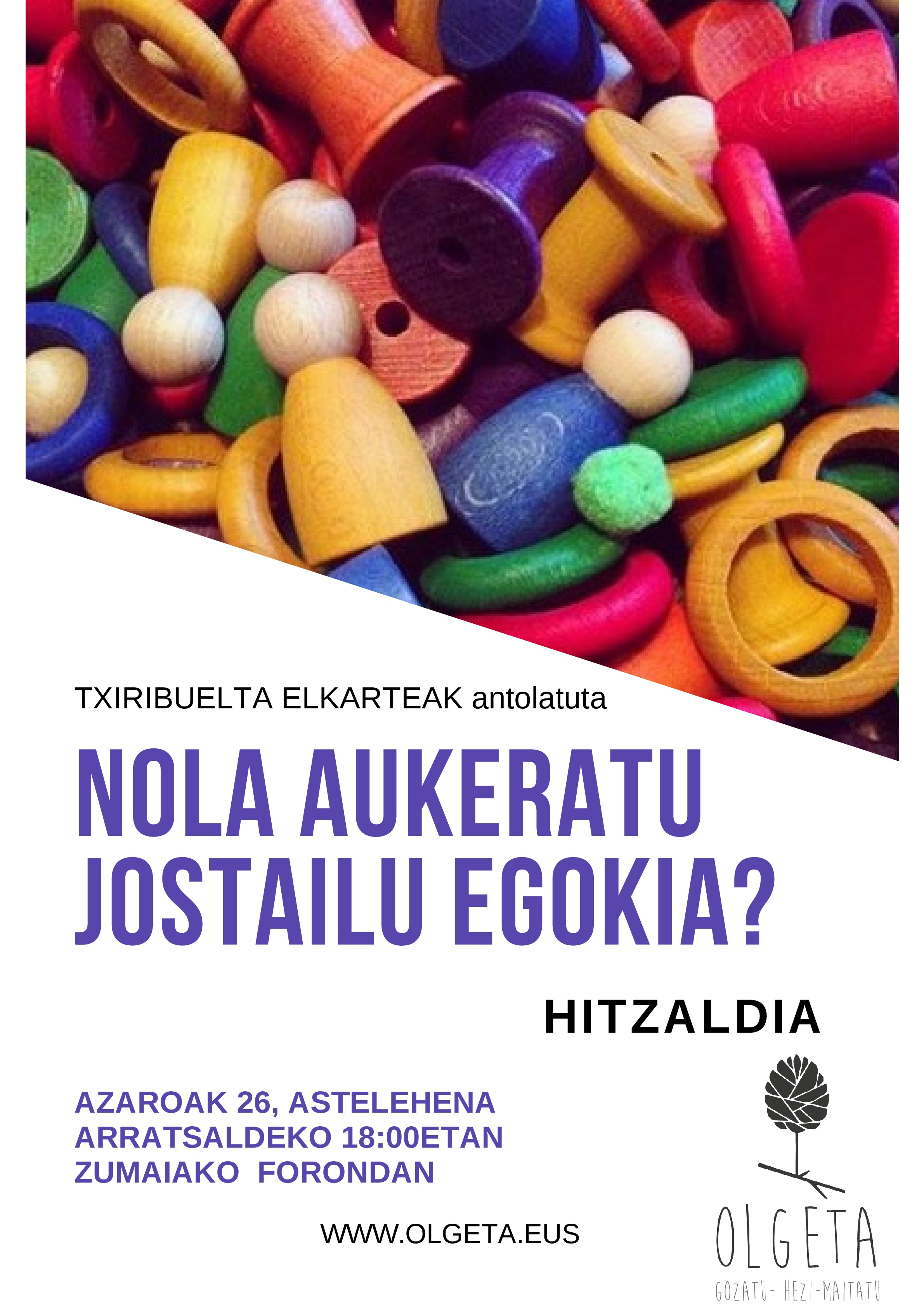 Nola aukeratu jostailu egokia? hitzaldia antolatu du Txiribuelta Elkarteak biharko. 18:00etan Forondan elkartuko dira, eta jolasa izango dute hizpide. Seme-alabek dituzten jostailuen inguruan hausnartu, eta egokienak aukeratzeaz arituko dira. Itsaso Pagoagak gidatuko du saioa.