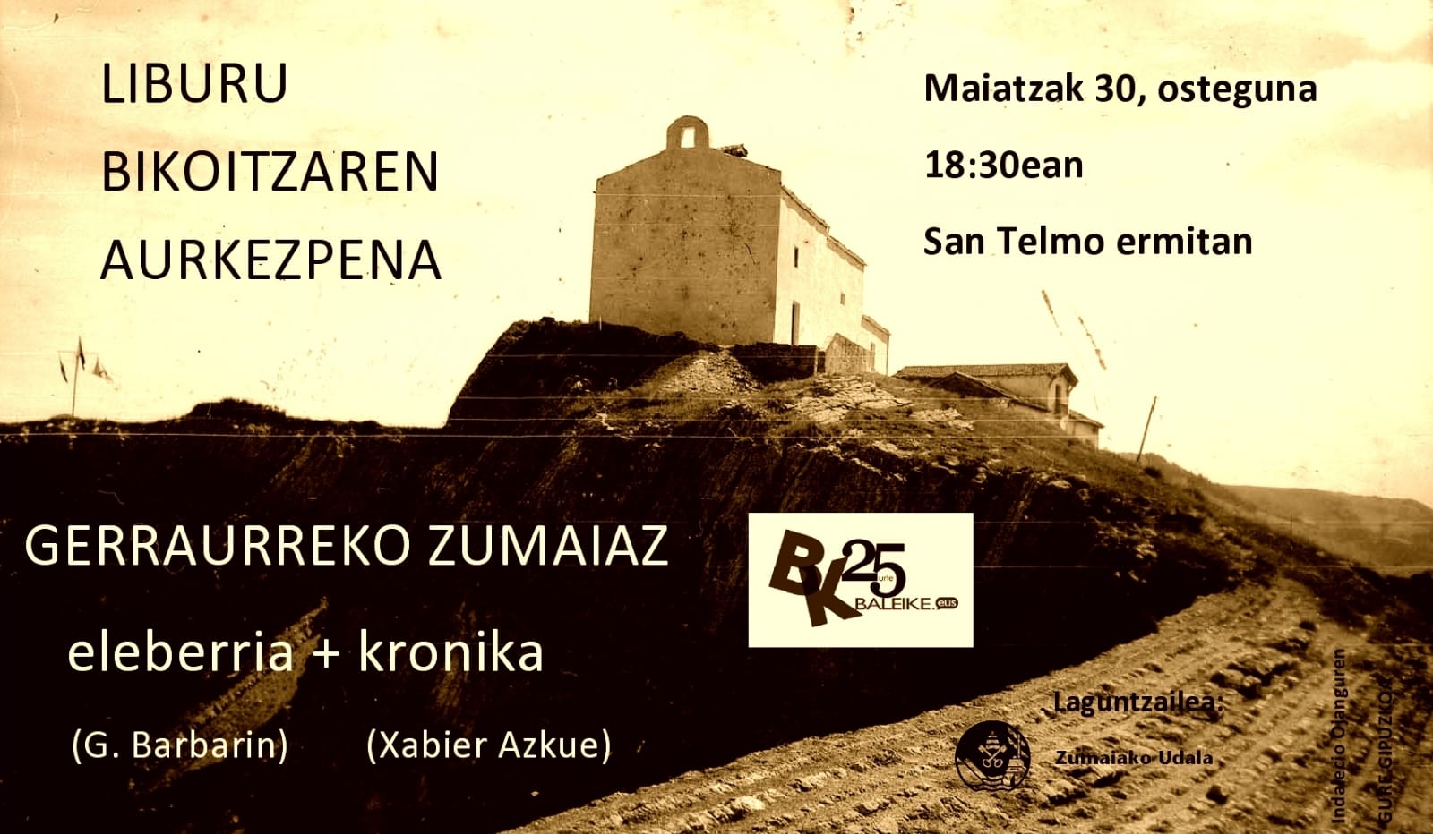 Liburu bikoitza da; alde batetik idazle frantses baten eleberria daukalako, 1936koa, eta bestetik Xabier Azkuek garai hari buruz osatu duen kronika, argazki, bertso, prentsa zati eta lekukotzez hornitutakoa. Aurkezpenean parte hartuko dute, kronikagileaz gain, eleberria euskaratu duen itzultzaileak, Maia Ossa Rissanenek, eta Jon Maia bertsolariak.
