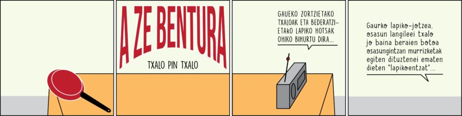 Enoken aste honetako bigarren zinta: txalo zaparrada eta lapiko jotzeak hizpide. Urola Kostako Hitza egunkarirako egin du azpeitiarrak konfinamendu garaian eguneroko ekintza bilakatu diren bi ekintza horien inguruko tira komikoa.