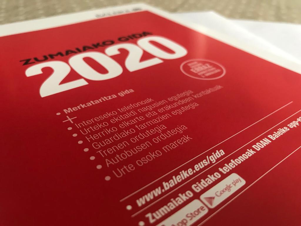 Zumaiako Gida 2020 kaleratu berri du Baleike Kultur Elkarteak. Dagoeneko egin da banaketa etxebizitza, saltoki eta enpresa guztietan. Zumaiako zerbitzu eta enpresa ezberdinen merkataritza gida aurkitu ahal izango da bertan; baita urteko ekitaldi nagusien egutegia, interesko telefonoak, autobusen ordutegiak edota urte osoko mareak ere. Bertsio digitalean ere eskura izango da, baleike.eus/gida helbidean.