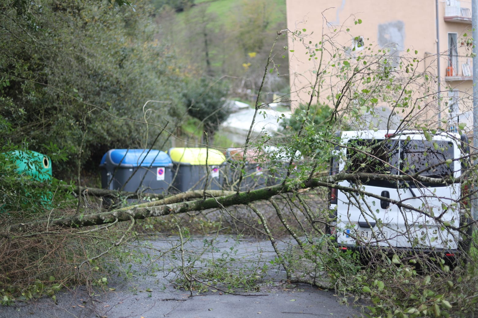 Arratsaldeko 16:00ak baino lehentxeago luizia izan da Jadarre auzoan, euriteek eta haizeak eraginda. Dirudienez, errepideko bihurgunera hamar metro inguruko mendi zati bat erori da, eta lauzpabost zuhaitz eraman ditu. Trafikoa itxita dago une honetan, eta heltzear dira suhiltzaileak.