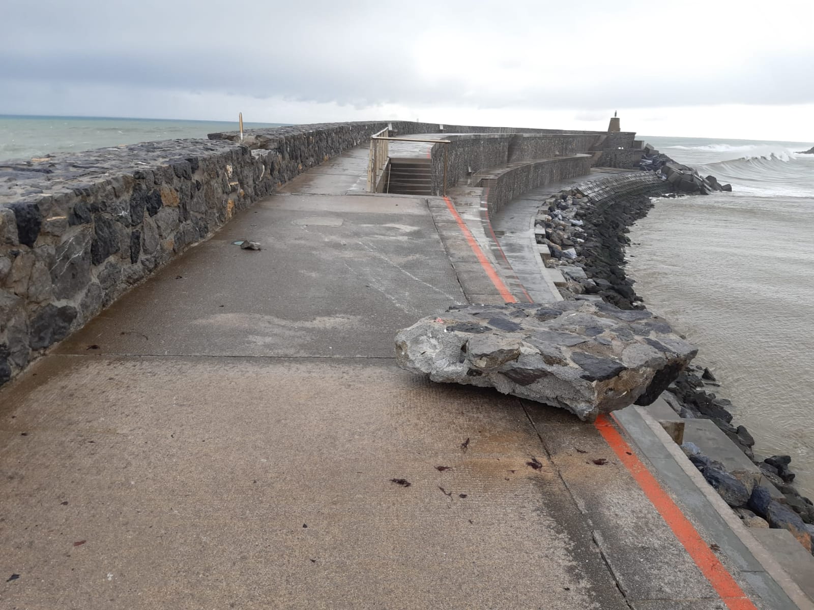 Egunotako denboraleak eta itsasaldiak olatu izugarriak ekarri ditu, eta paol bideko barran kalteak eragin dituzte olatu horiek. Argazki honetan ikus daitekeenez, harri zati bat hautsi eta goiko paseo gainera erori da. Portu Zuzendaritza jakinaren gainean da, eta konpontze lanak ahalik eta lasterren egitea aurreikusi dute.