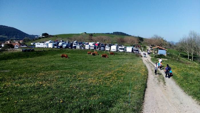 Elorriagan hartutako argazkia da horren erakusle. Galarreta gaineko aparkagunea kotxez eta autokarabanez gainezka zegoen gaur gainean. Asteburuan etxeetatik irteteko gosez, lagun ugari bertaratu da auzo honetara naturaz gozatzera.