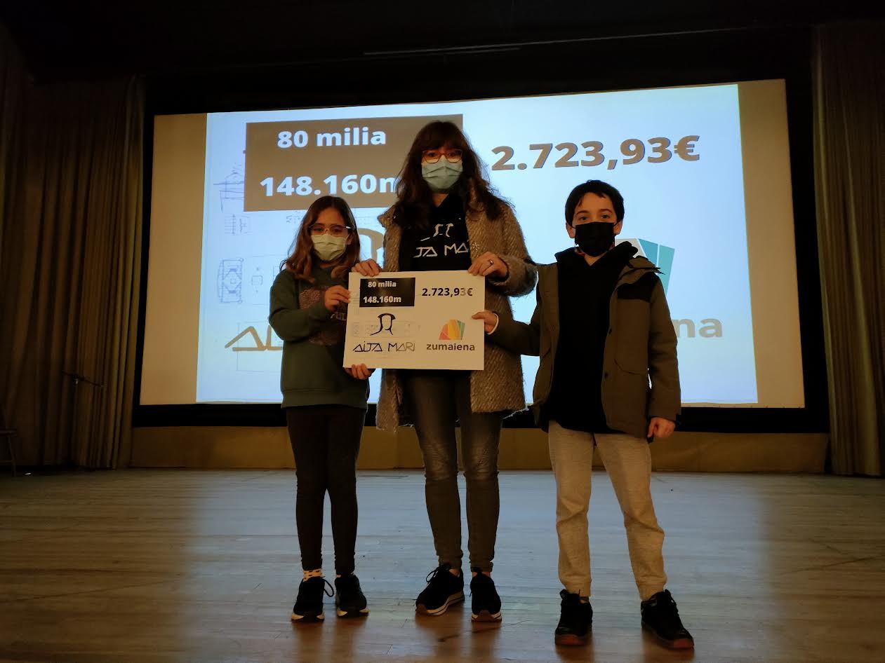 'Aita Mari' ontziko ordezkari Nerea Matxado izan zuten atzo gonbidatu ikastetxean, eta ekitaldi xume bat antolatu zuten egiten duten lana eskertzeko. Horrez gain, urtarrilaren amaieran bildutako 2.723 euroko aportazio ekonomikoa eman zioten. "Denon artean, hondar-ale garrantzitsua jartzen saiatu gara giza eskubideen aldeko lanean", diote Zumaiena Ikastetxean.