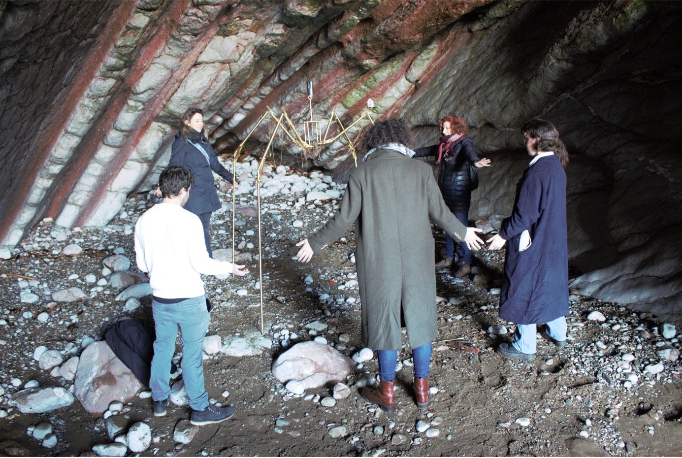 Aurretik, pasa den larunbatean, ekintza artistikoa gauzatu zuen Charbonnelek Itzurun hondartzan, labarretako zuloetako batean. Aura Loci izeneko obra inauguratzeaz gain, “dinosauroen aroaren amaiera markatu zuen denboraren agerpena eta inpresiora deitu zuen”. Ekintza hori, Uharte zentroan erakutsiko den piezaren sormen prozesuko parte bezala definitu zuen.