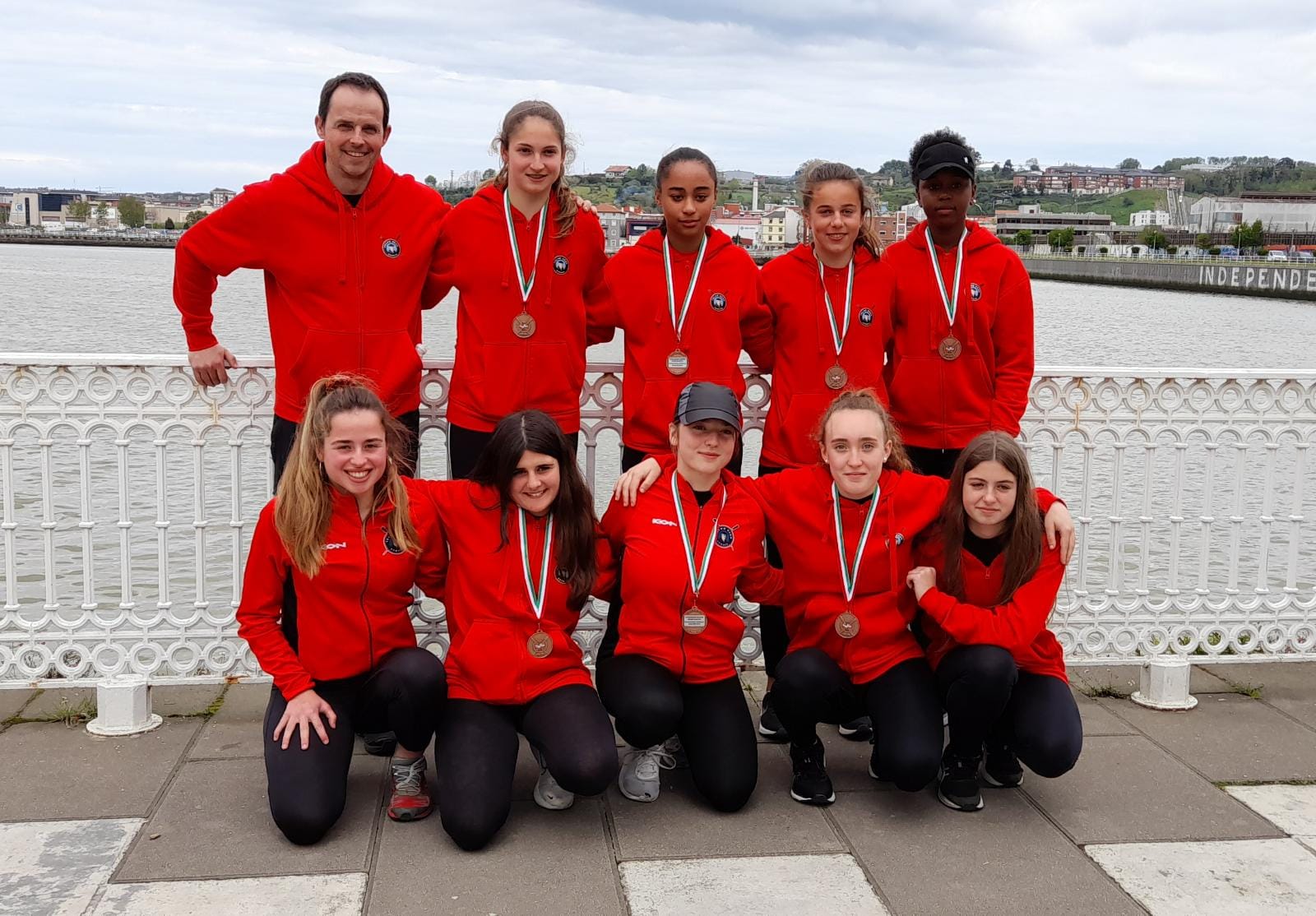 Kadete neskak, berriz, hirugarren izan ziren atzo Sestaon, txapelketa irabazi zuen Hernani eta bigarren izan zen Tolosaldearen atzetik. Brontzezko domina lortu zuten atzo Zumaiako kadeteek.