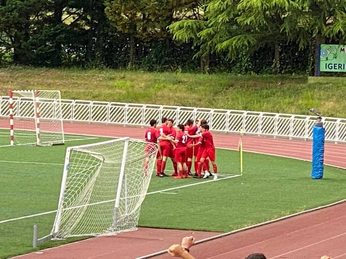 Ez da, ordea, sufrimendurako unerik izan. Telleriak laugarren eta azken gola sartu du, eta hor bai, zelaian zeuden jokalariak, eta eserlekutik jarraitzen zuten guztiak besarkada handi batean elkartu dira.