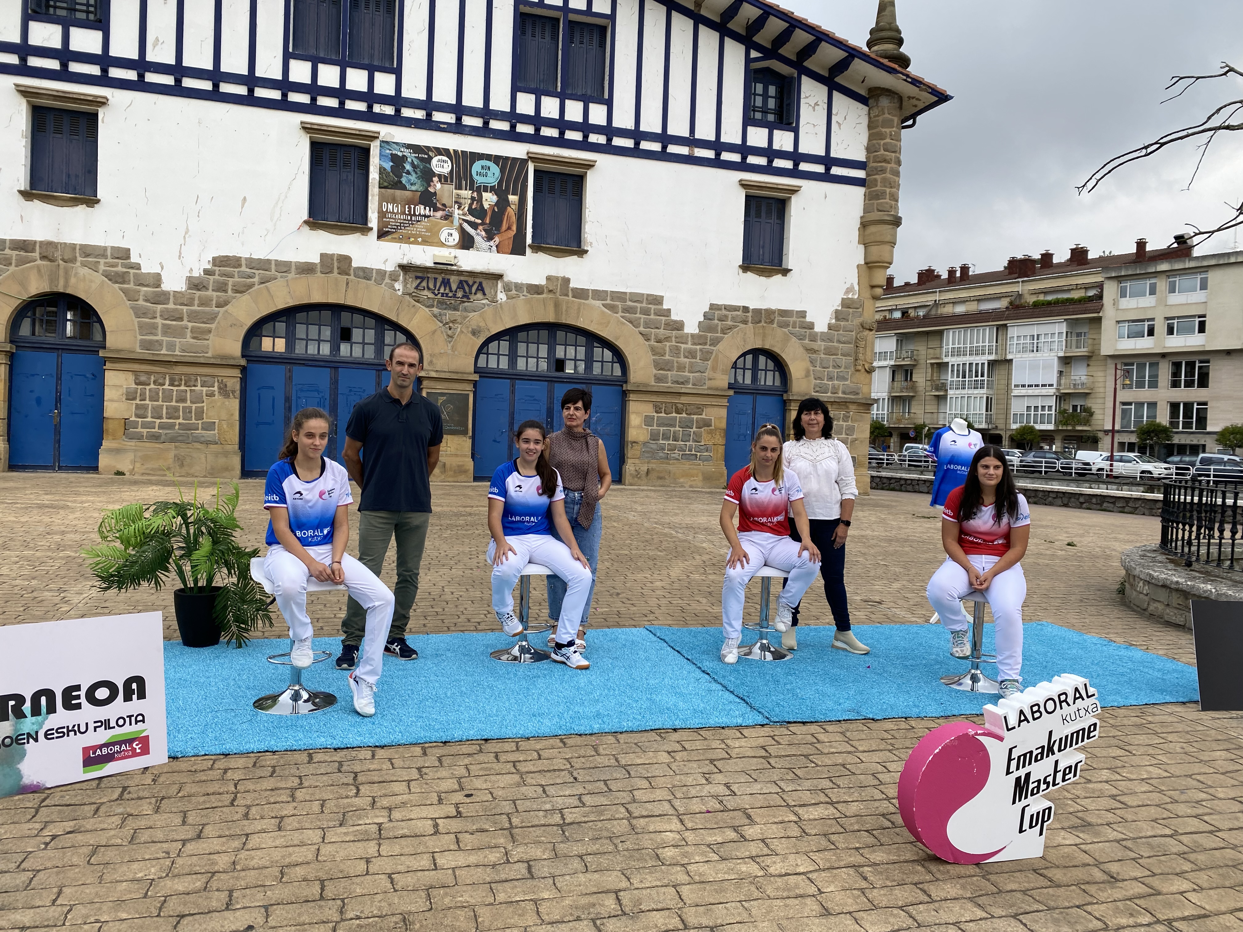 Finalistekin batera, ekitaldian izan ziren Arritxu Iribar Zumaiako Kirol zinegotzia, Gontzal Enbil Euskadiko Pilota Federazioko presidentea eta Marije Etxaniz Laboral Kutxaren babesle arduraduna. Bide batez, herriko eta inguruko pilotazaleei pilotalekura gerturatzeko gonbita luzatu zieten,egungo emakumezko esku pilotaririk onenen jokoaz gozatzera.