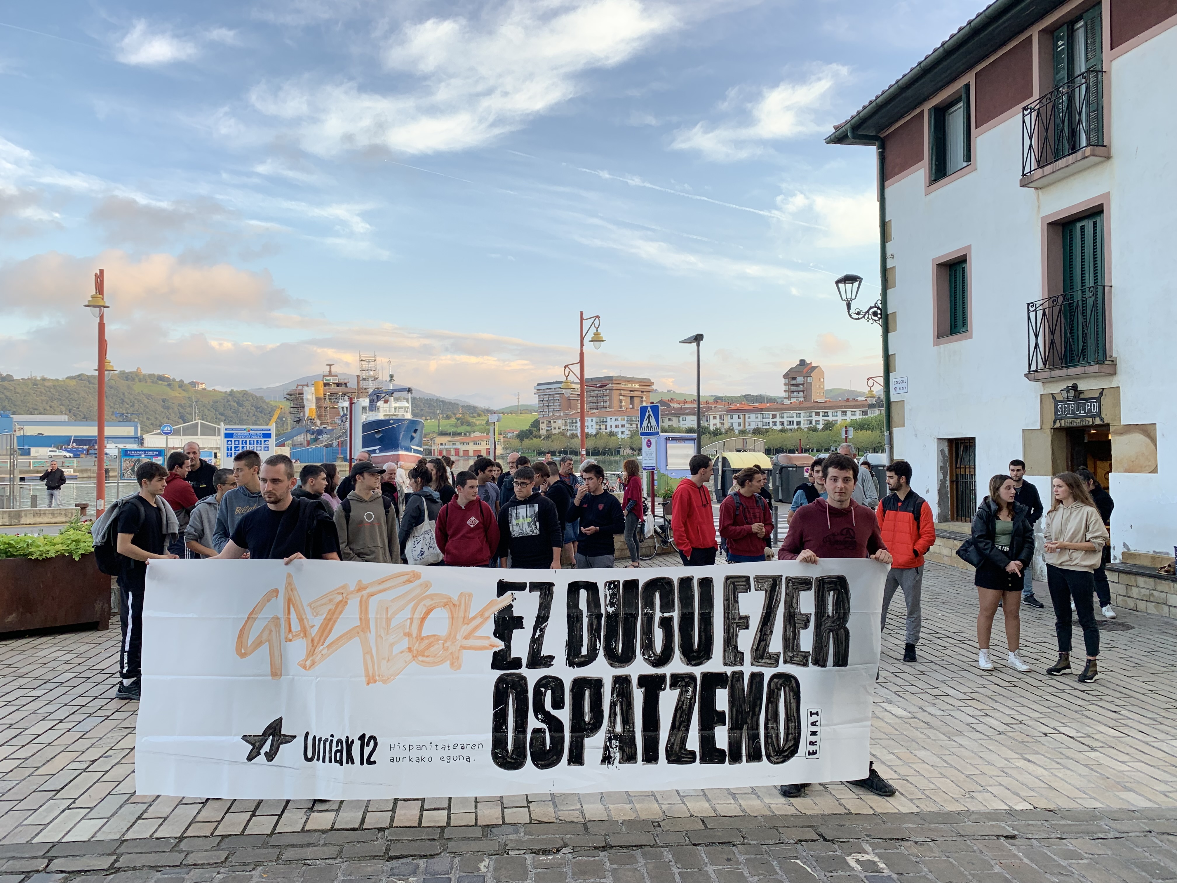 Hispanitatearen Eguna, hau da, urriaren 12a, independentziaren aldeko aldarria lau haizetara zabaltzeko baliatu zuen atzo Zumaiako Ernai gazte antolakundeak.