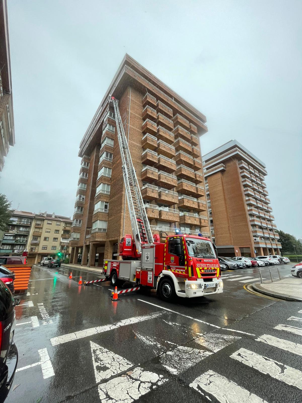 Suhiltzaileek ere lanak izan dituzte. Eguerdi partean Alai Auzategiko dorreetako batean kolokan geratutako egurrezko xafla batzuk kendu dituzte. Erribera kaleko etxe bateko teilatu batean ere arazoak izan dituzte.
