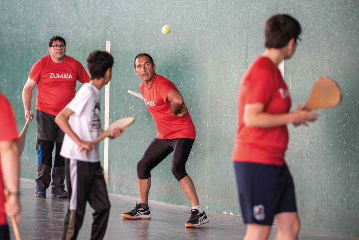Lehen entrenamendu saioak Aitzuri frontoian egiten zituzten, "baina eskola kiroleko kontuak zirela-eta, esan ziguten ea ahal izango genuen hona [Zumaiako Herri Eskolako frontoira] etorri. Orain, ostegunetan entrenatzen dugu, 18:30etik 19:30era", dio Esnalek.